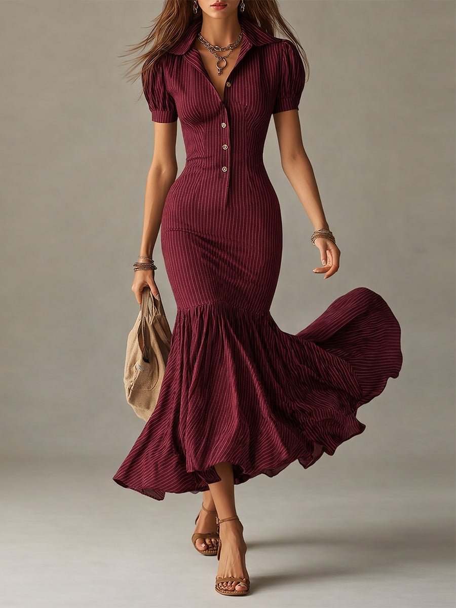 Elegant Striped Slim-fit Mermaid Maxi Dress